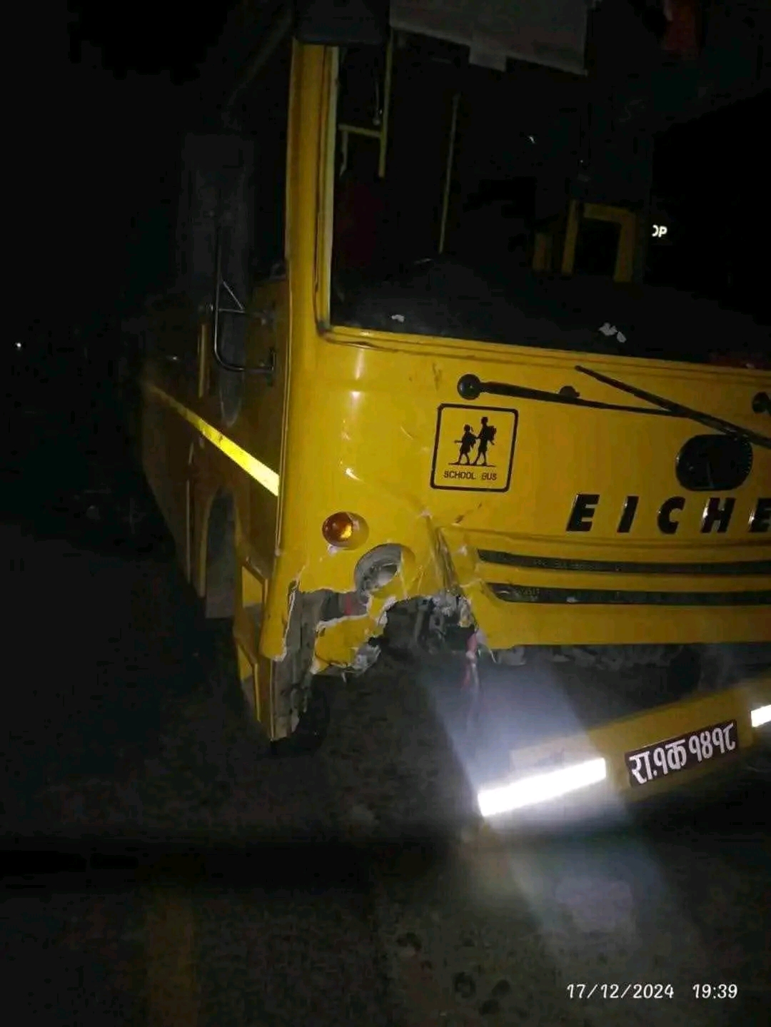 पुर्व पश्चिम राजमार्ग लमही-भालुवाङ सडकखण्डको बिजौरीमा आज बेलुका स्कुल बसले मोटरसाइकललाई ठक्कर दिदा मोटरसाइकल चालक राप्ती गाउँपालिका-८ बिजौरीका २० वर्षका किसन शाहीको मृत्यु भएको हो।