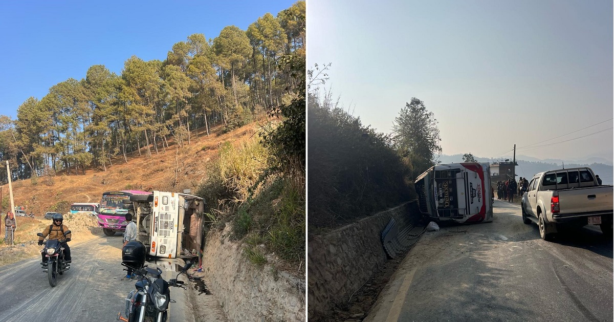बागमती प्रदेश-३-०१-००५ ख ९९४२ नम्बरको बस धुलिखेल नगरपालिका-१० सारादा बतासेस्थित बिपी राजमार्गमा सवा ८ बजे आफैँ अनियन्त्रित भई सडकको नालीमा पल्टिएको जिल्ला प्रहरी कार्यालय काभ्रेले जानकारी दिएको छ।