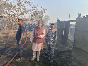 सन्देश भुसाल, नेपालगञ्ज : बाँकेको नरैनापुर गाउँपालिका–४ जयरामपुरवामा मंगलबार दिउँसो भीषण आगलागी हुँदा १७ भन्दा बढी घरगोठ जलेर नष्ट भएका छन्। दिउँसो करिब ३ बजे जुमाई खाँको घरबाट सुरु भएको आगो तीव्र हावाहुरीका कारण छिट्टै फैलिँदा ठूलो क्षति भएको हो।