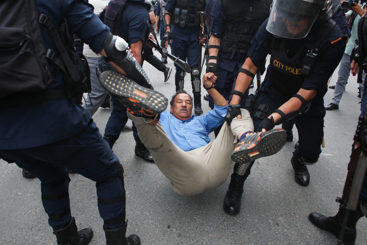 सबैभन्दा ध्यानाकर्षक दृश्य भने त्यतिबेला देखियो जब निषेधित क्षेत्र तोड्दै अघि बढ्न खोज्दा पूर्व उपप्रधानमन्त्री तथा पूर्व गृहमन्त्री कमल थापालाई प्रहरीले रोकेको मात्र होइन, झैं–कुटी गर्दै भ्यानमा चढाएर लगेको थियो। त्यो क्षण धेरैका लागि स्तब्ध बनाउने खालको थियो।
