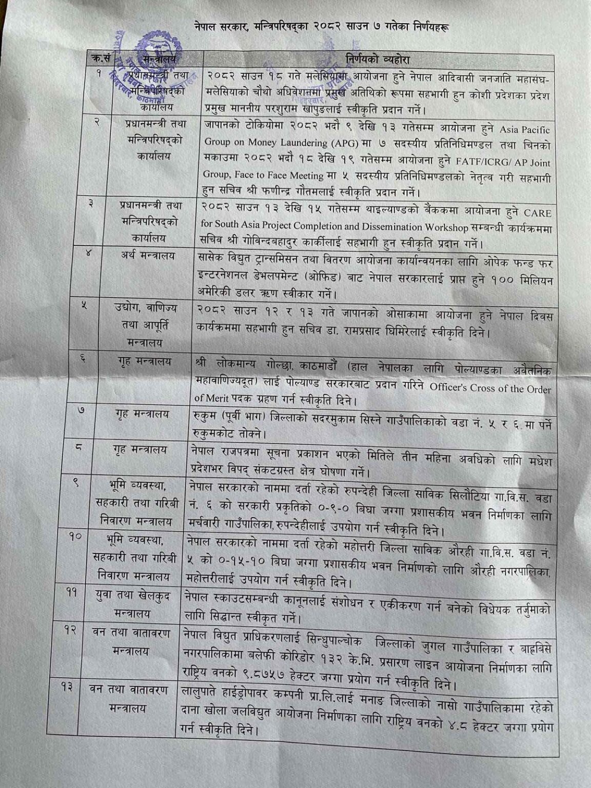 सोमबारको बैठकले विभिन्न १३ वटा निर्णय गरेको सरकारका प्रवक्ता एवम् सञ्चार तथा सूचना प्रविधि मन्त्री पृथ्वी सुब्बा गुरुङले बताए ।