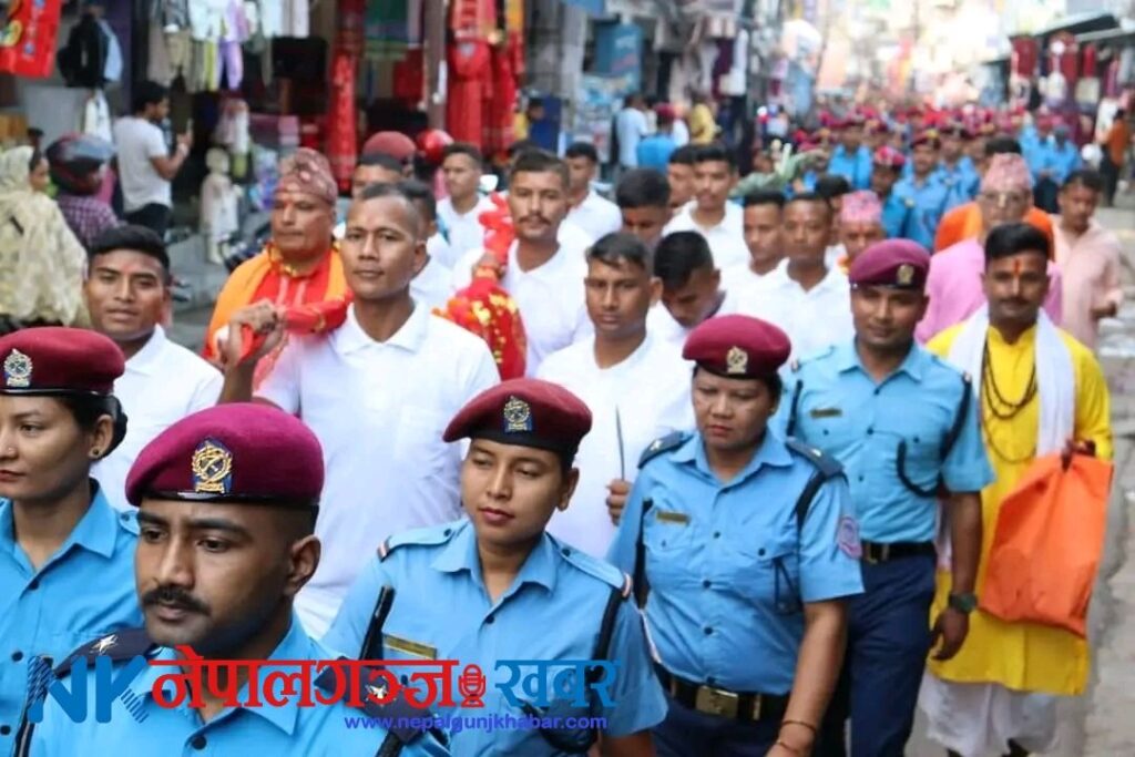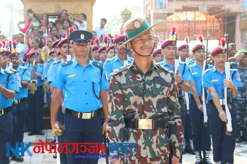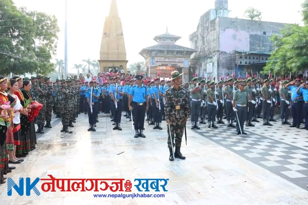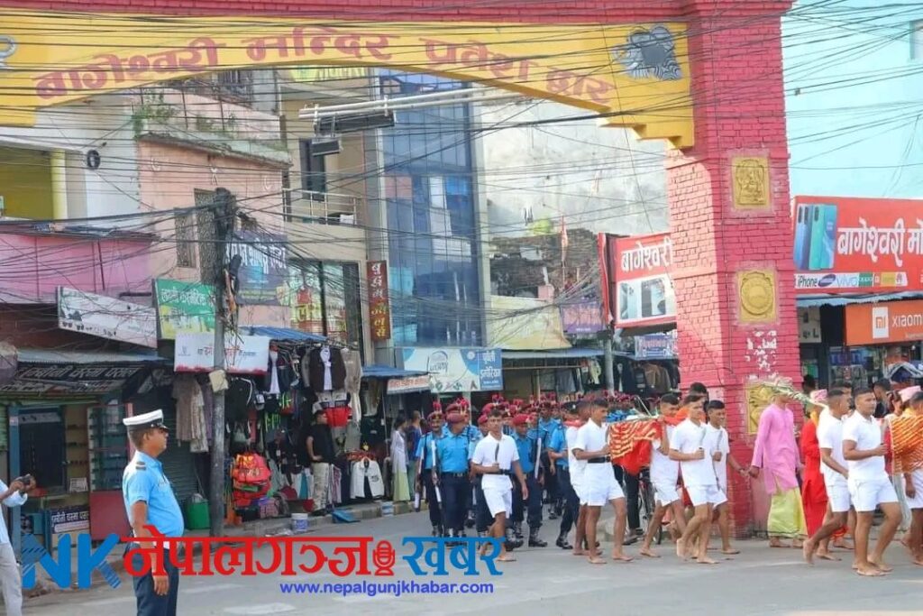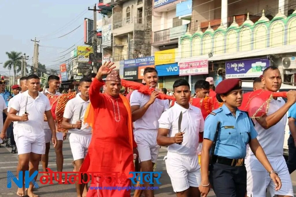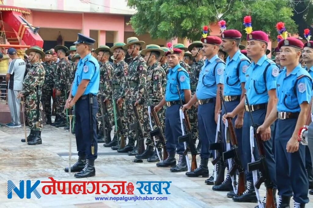 बाँके, नेपालगञ्ज । आज बाँके जिल्लाको प्रमुख धार्मिक स्थल श्री बागेश्वरी मन्दिरमा नेपाली सेना, नेपाल प्रहरी र सशस्त्र प्रहरीको संयुक्त टोलीले विशेष समारोहबीच फूलपाती भित्र्याएका छन्। यस अवसरमा टोलीले बिहानै मन्दिरमा पूजा अर्चना गरी फूलपाती चढाएका थिए।