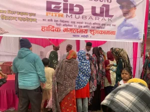 नेपालगन्ज पोष्ट: इस्लाम धर्मावलम्बीहरूको महान पर्व ईदलाई लक्षित गर्दै समाजसेवी राजा खानको सक्रियतामा सञ्चालन भएको ‘राजा खान विइड ह्युमन’ अभियान अन्तर्गत सेमई वितरण कार्यक्रम सम्पन्न भएको छ। सामाजिक सद्भाव र आपसी सहयोगको भावना प्रवर्द्धन गर्ने उद्देश्यले आयोजना गरिएको उक्त कार्यक्रमले समुदायमा उत्साह थपेको छ।