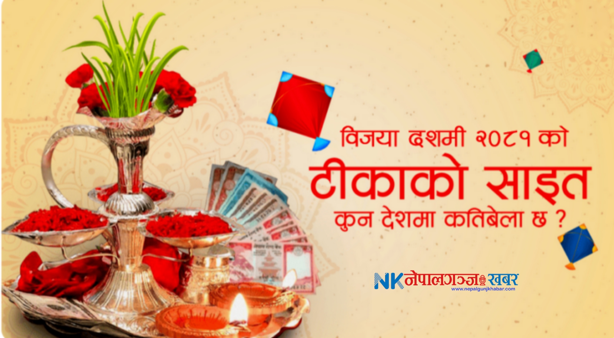 विभिन्न देशमा बसोवास गर्ने सनातन धर्मावलम्बीबाट विजया दशमी टीकाको साइतबारे जिज्ञासा राखिएकाले विजया दशमी २०८१ को शुभसाइत सार्वजनिक गरिएको समितिका सदस्य सचिव लक्ष्मण पन्थीले जानकारी दिए।