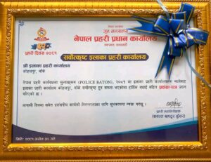 विभागीय मूल्य–मान्यता, आदेश–निर्देशनको पालना गरी व्यावसायिक, लगनशील र कर्तव्यनिष्ठ तवरले कर्तव्य पथमा तल्लीन रही उच्च मनोबल र साहसका साथ आफ्नो कर्तव्य निर्वाह गरी अपराध अनुसन्धानको क्षेत्रमा विशेष योगदान पु¥याएको कारणले सर्वोत्कृष्ट प्रहरी घोषित गरेको प्रहरी प्रधान कार्यालयले जनाएको छ ।