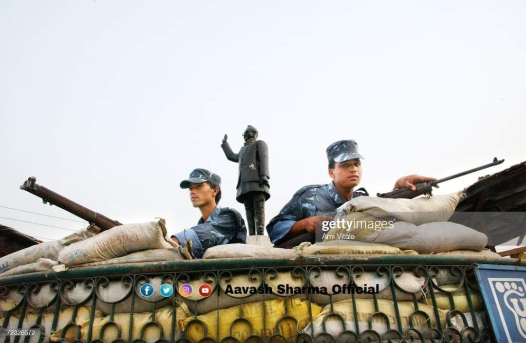 २००४ अर्पिल १५ शाहि नेपालका शैनिकहरु राजाको शालिकको रक्षा गर्दै