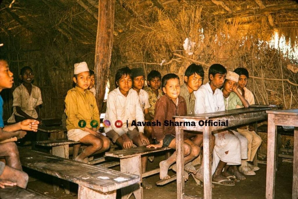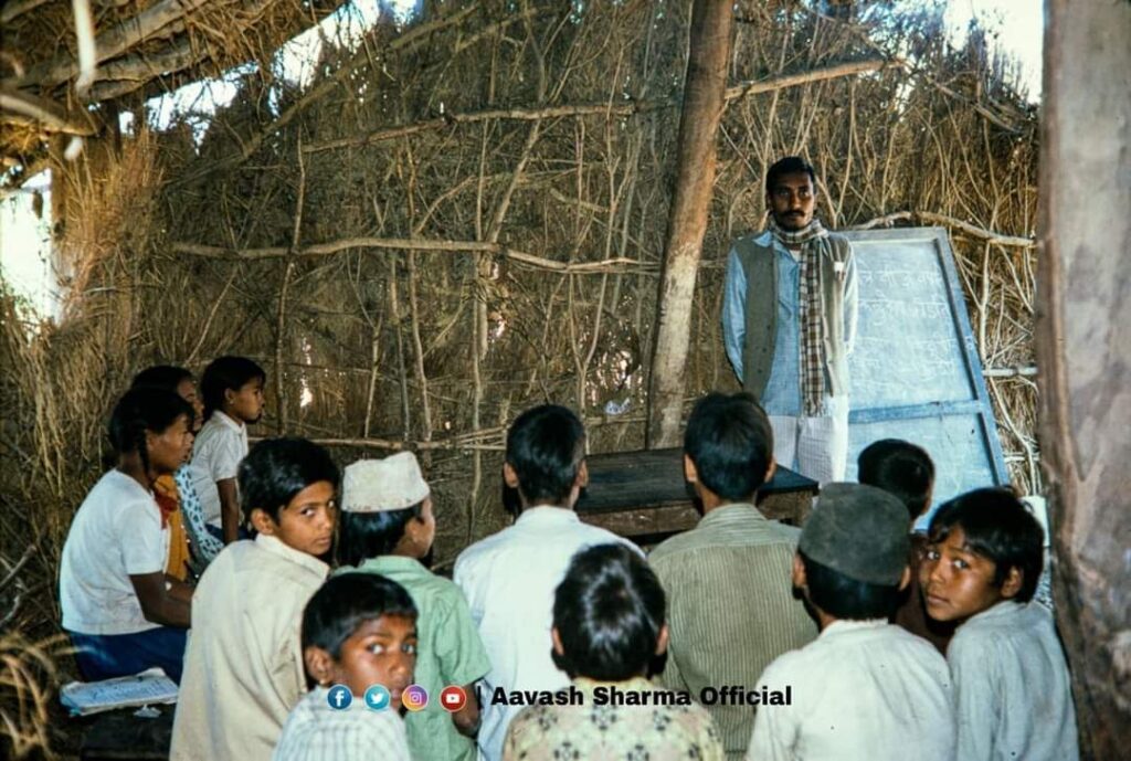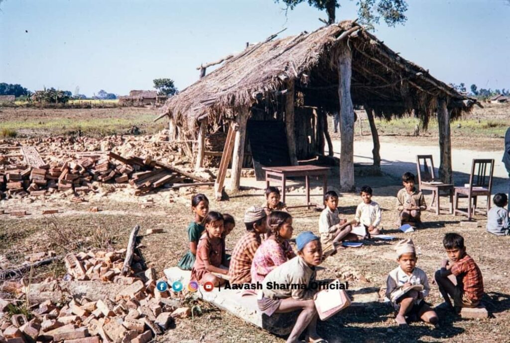 सन १९७३, नेपालगन्ज नजिकको एक खुल्ला प्रथामिक बिद्यालय संरचना एवं बिद्यार्थी